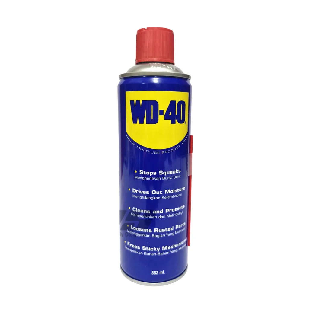 WD-40 cairan serbaguna untuk melumasi, membersihkan, dan melindungi dari karat. Cocok untuk rumah tangga, motor, dan berbagai peralatan. Praktis & multifungsi!